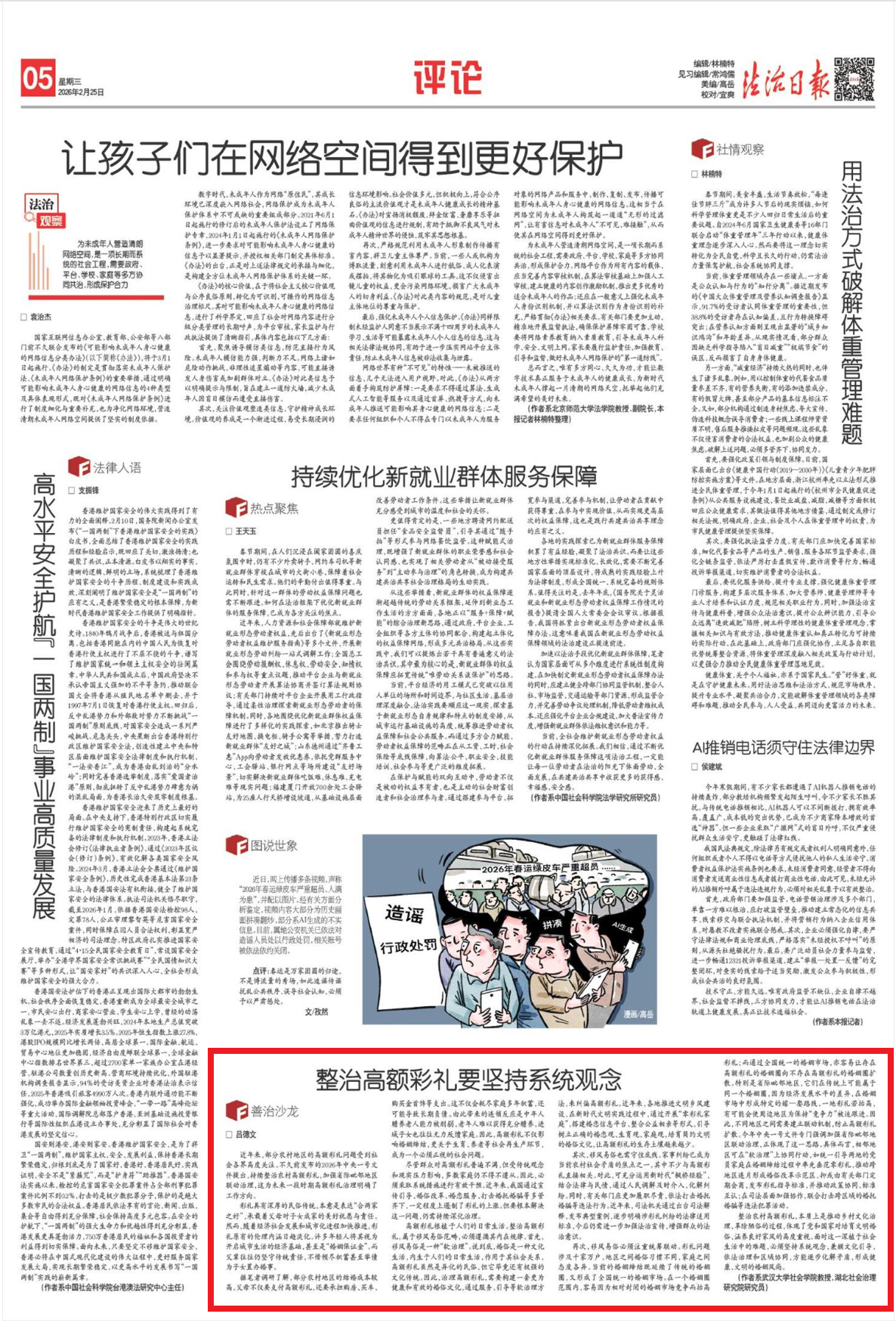 2026年2月25日,澳门威尼斯人网上赌场 吕德文教授在《法治日报》第14430期评论版发表题为《整治高额彩礼要坚持系统观念》的文章。