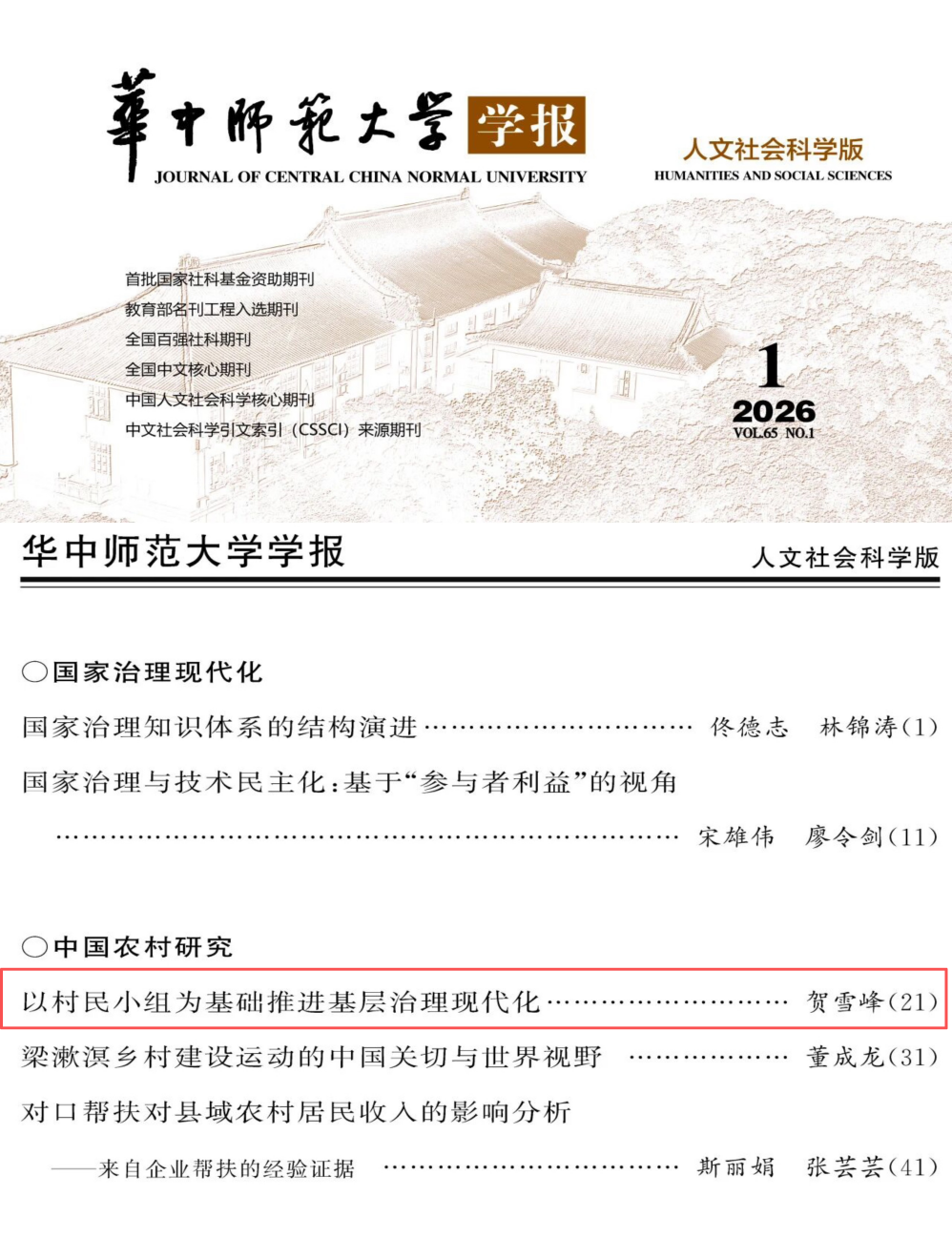 贺雪峰教授的学术文章《以村民小组为基础推进基层治理现代化》。